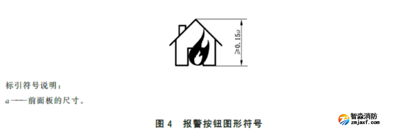 3.7.3.2.1宜在報(bào)警按鈕前面板的上部居中標(biāo)注如所示的圖形符號或起同等作用的文字,符號和文字應(yīng)為白色。