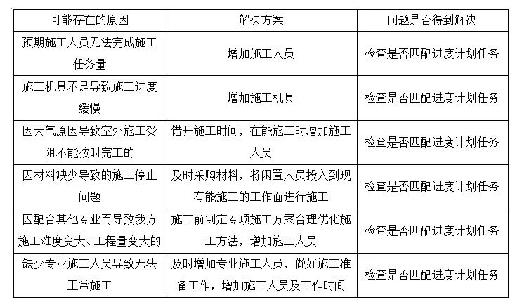 偏離進度計劃表可能存在的原因及解決方法: