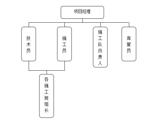 項目部應設置項目經理、技術員、安全員、庫管員等人員。具體組織機構如下圖: