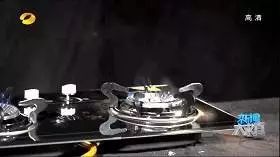 這一次液化氣使用的是正常的液化氣灶臺為了模擬極端情況,實驗人員將其中一個灶圈涂滿油污,并讓灶圈的位置有些偏離。