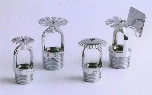 自動噴頭是閉式自動噴水滅火系統(tǒng)的關鍵組件,系通過熱敏感釋放機構(gòu)的動作而噴水。它由噴水口、溫感釋放器(控制器)和濺水盤組成,其形狀和樣式較多,下圖為常用的低熔點金屬控制器自動噴頭和爆炸瓶式自動噴頭。