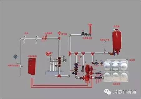 由噴頭、管道系統、濕式報警閥、報警裝置和供水設施等組成。由于該系統在報警閥的前后管道內始終充滿著壓力水,故稱濕式噴水滅火系統或濕管系統。