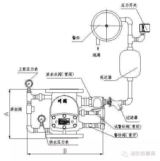 3、方便維修調試,應在干式閥前后安裝閥前供水控制閥和閥后控制閥。