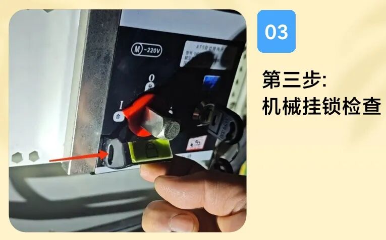 機械掛鎖是電工檢修安全保證措施,防止檢修時自動轉換開關自動轉換或發生有人誤送電,造成觸電事故。